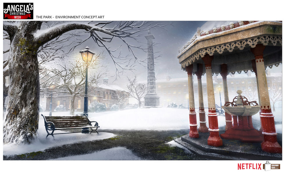 As Assistant Art Director on the Netflix feature Angela’s Christmas Wish (2019–2020), I created key concept art and oversaw the design of environments, characters, props, and lighting keys, helping establish the warm, story-driven aesthetic of the film. I also set the visual tone and lighting for pivotal emotional moments and created matte paintings that enhanced the film’s heartfelt atmosphere. I developed texture callouts for several key sets and contributed to the design of new characters, including Angela’s father, Dorothy, the ship captain and the port workers. Leading the 2D art team, I conducted daily check-ins and reviews to maintain visual cohesion and keep production on track under tight deadlines.